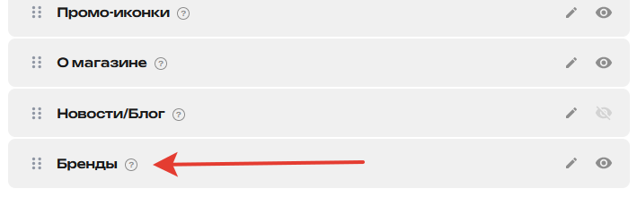 1) В разделе Настройки, добавьте новую строчку в самом конце окна - {"id":"home_brands","title":"Бренды","sort":8,"enable":true} (не забудьте добавить запятую в конце предыдущего блока)